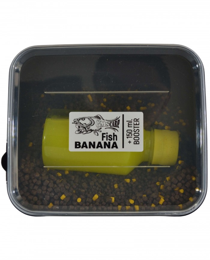 Включеният 150мл бустер с аромат на банан и риба подсилва ефекта на пелетите и прави захранката още по-привлекателна за шарани, амури и други мирни риби. Тази комбинация е особено ефективна през топлите месеци, когато сладките аромати работят отлично, но е приложима целогодишно.