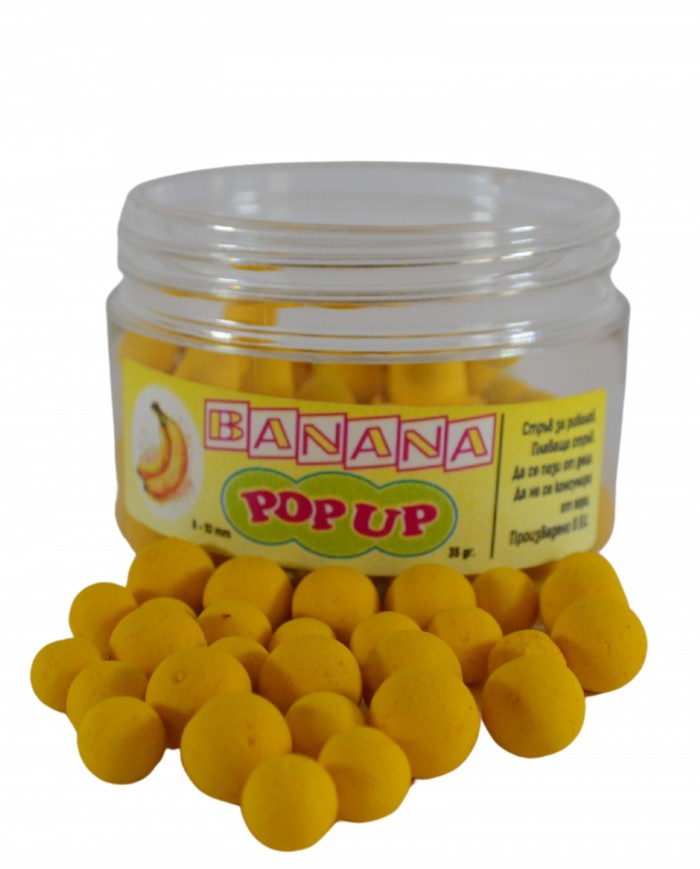 Поп-ъп топчетата Банан са изключително атрактивни и ароматни, създадени да привличат вниманието на рибите от далечни разстояния. Подходящи за различни монтажи от тип "поп-ъп" и "снежен човек".