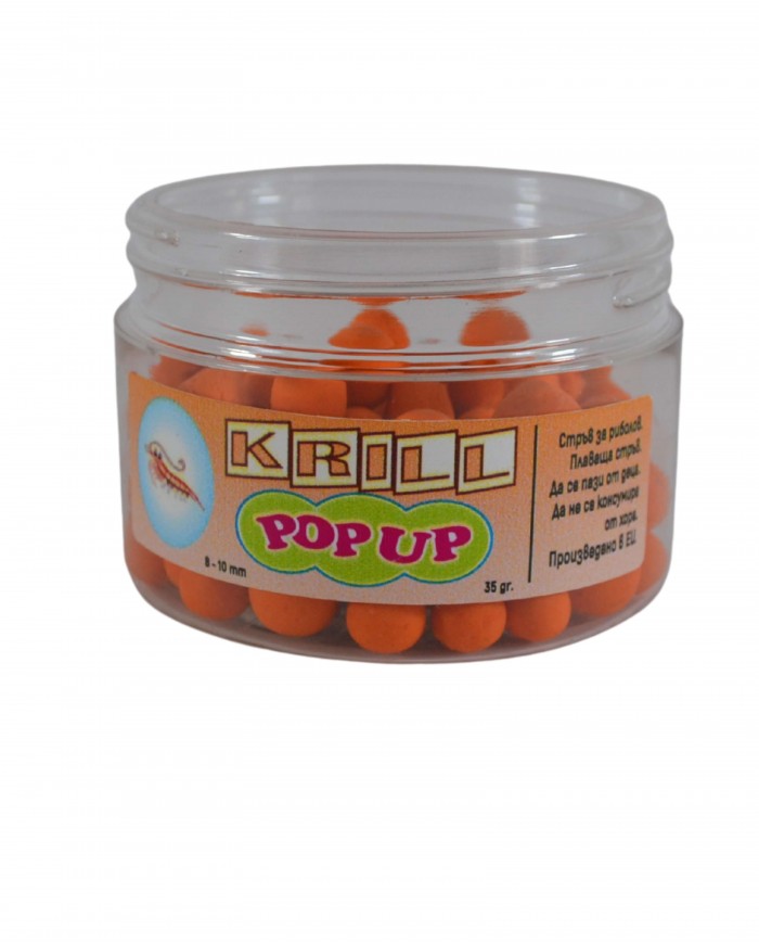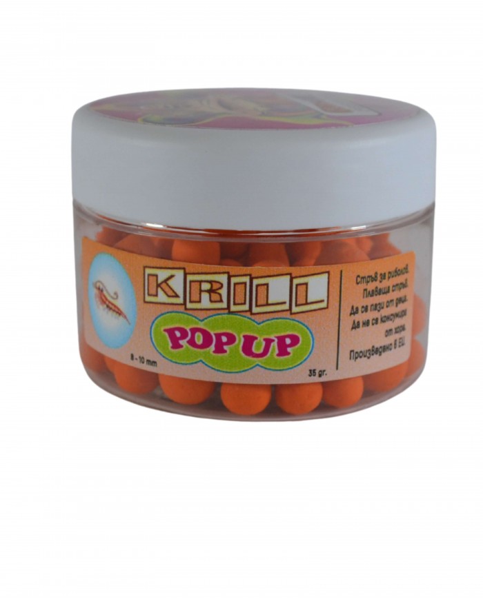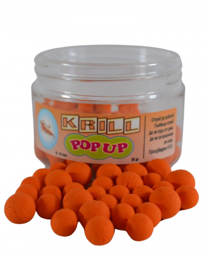 Поп-ъп топчетата Krill с размер 8-10мм и тегло 35гр са незаменим избор за всеки риболовец, който търси максимална атракция и гъвкавост в представянето на стръвта. Те имат интензивен рибен аромат, който се разпространява бързо във водата и предизвиква рибите да атакуват.