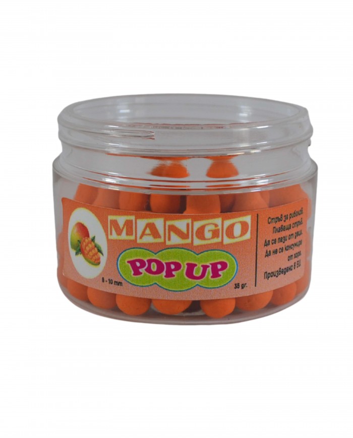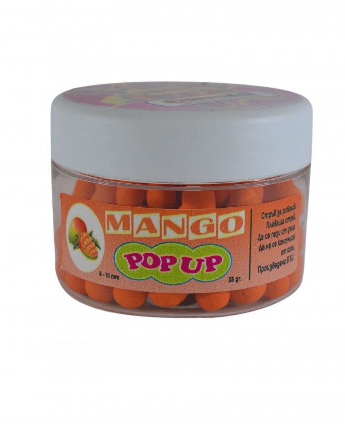Поп-ъп топчетата Манго са изключително атрактивни и ароматни, създадени да привличат вниманието на рибите от далечни разстояния. Подходящи за различни монтажи от тип "поп-ъп" и "снежен човек".