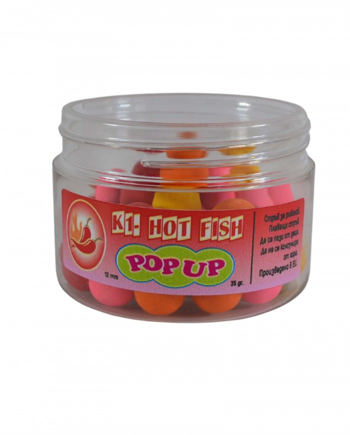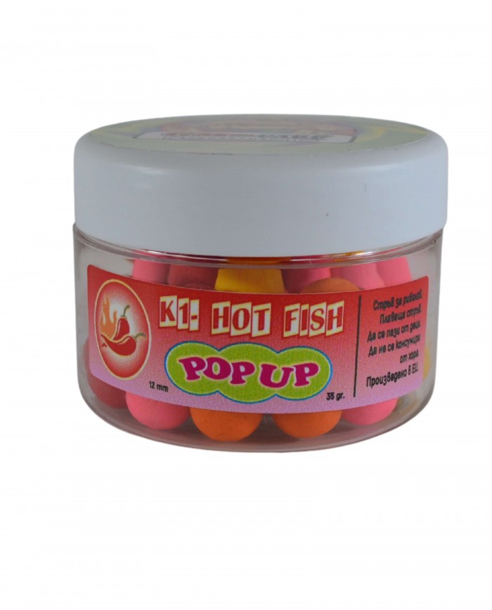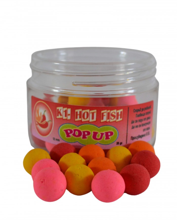 Поп-ъп топчетата K1 & Hot Fish са изключително атрактивни и ароматни, създадени да привличат вниманието на рибите от далечни разстояния. Подходящи за различни монтажи от тип "поп-ъп" и "снежен човек".