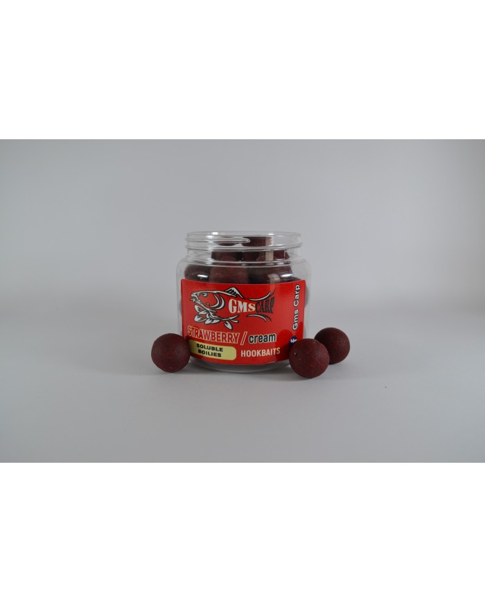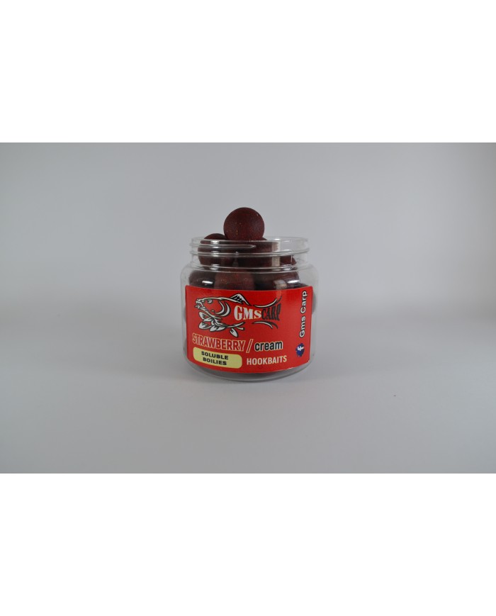 Разтворими протеинови топчета за стъв от с аромат на Ягода и сметана. Съдържат високо качествени съставки като standard fish meal от CCMoore, Robinred на Hait's, ликуиди, атрактанти, витамини, минерали и други съставки, които ги правят мощна и неустоима примамка за шарана и шарановите риби. Изключително подходящи и доказани в съзтезателния риболов.