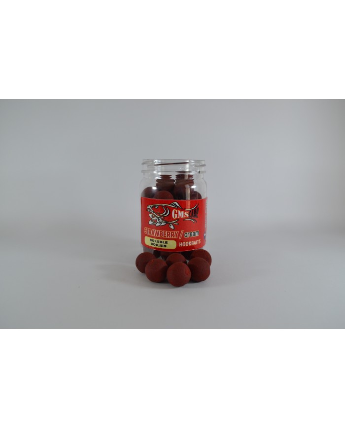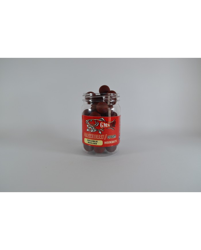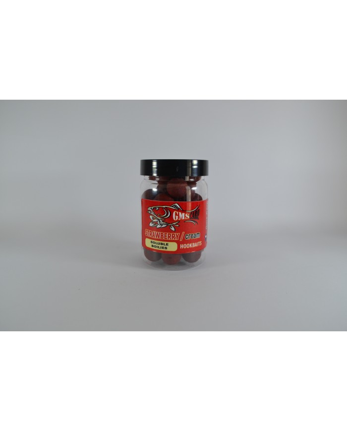 Разтворими протеинови топчета за стъв от с аромат на Ягода и сметана. Съдържат високо качествени съставки като standard fish meal от CCMoore, Robinred на Hait's, ликуиди, атрактанти, витамини, минерали и други съставки, които ги правят мощна и неустоима примамка за шарана и шарановите риби. Изключително подходящи и доказани в съзтезателния риболов.