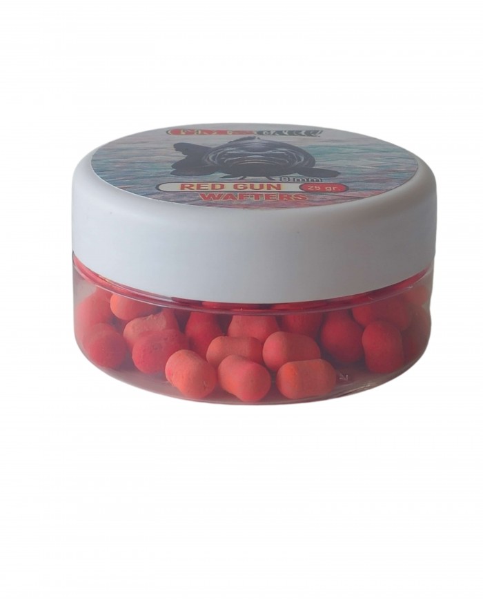 Баланс между атрактивност и естествено поведение във водата – вафтерите Red Gun са идеални за предпазливи и мнителни риби. С ярък цвят и прецизно подбрани аромати, те се носят леко над дъното, като провокират кълване дори в трудни условия.